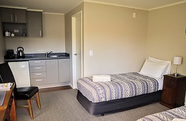 Situated in the main School building, this versatile ensuite room can be configured with a King bed or two Single beds to suit your needs. It also features an additional lockable exit that leads directly into the garden, providing extra convenience and privacy.