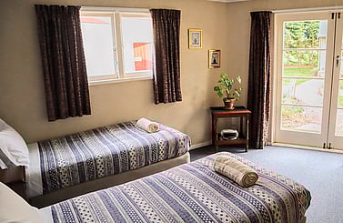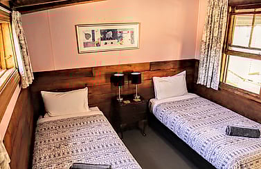 This cosy twin room shares nearby bathroom facilities with the Cabin and Sports Shed. Situated at the end of the Detention Shed, it is an excellent option for supplementary accommodation, especially for additional children of families staying in the Detention Shed, Cabin, or Sports Shed.