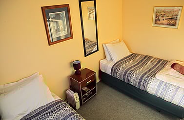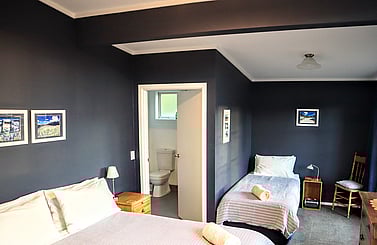 This room was once the original School's Sports Shed, now transformed into a charming double or twin room. It is situated just across the path from the shared bathroom, offering convenience and comfort.